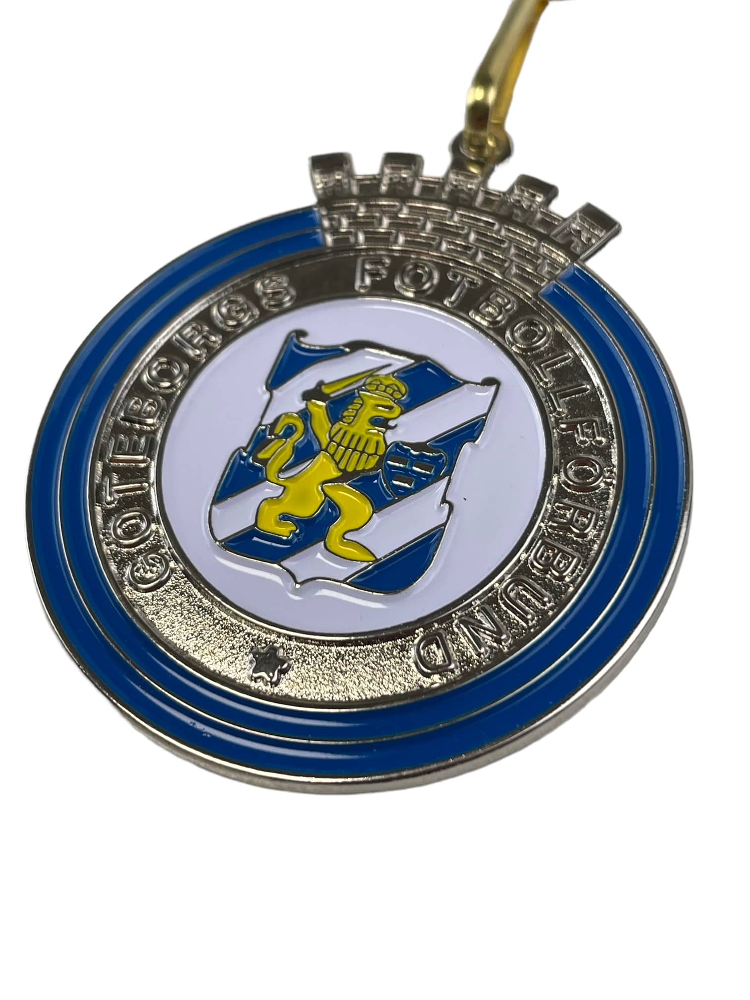 Med blåvitt medaljband som står för stolthet och glädje i göteborgsfotbollen.